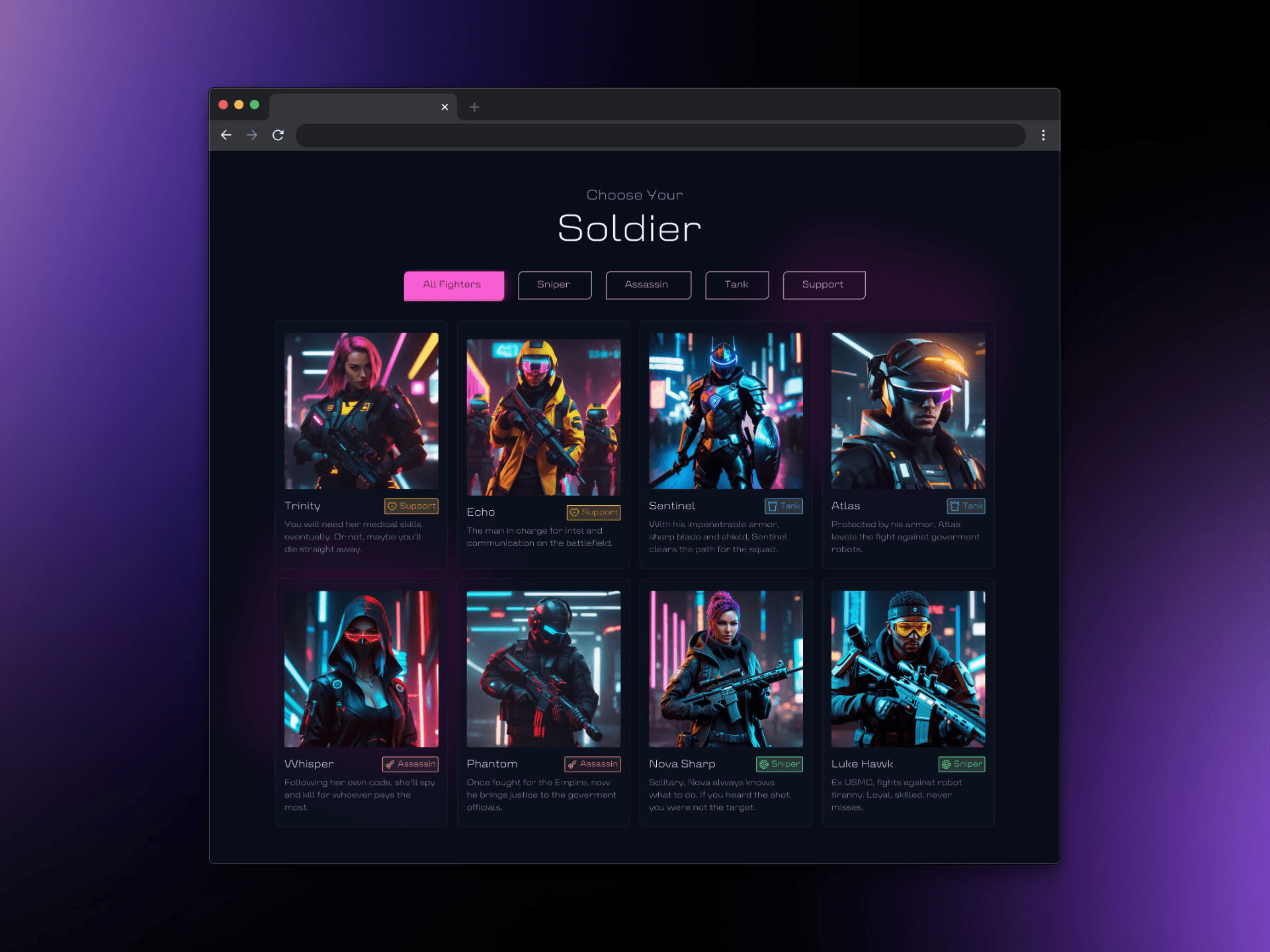 Criamos uma interface futurista, sombria e imersiva, com elementos visuais que reforçam o universo tecnológico do jogo. Cores escuras, neons e tipografia robusta ajudam a transmitir a proposta do Steel Strife. O layout é dinâmico, intuitivo e adaptável, guiando o usuário pela história, facções e recursos do game.